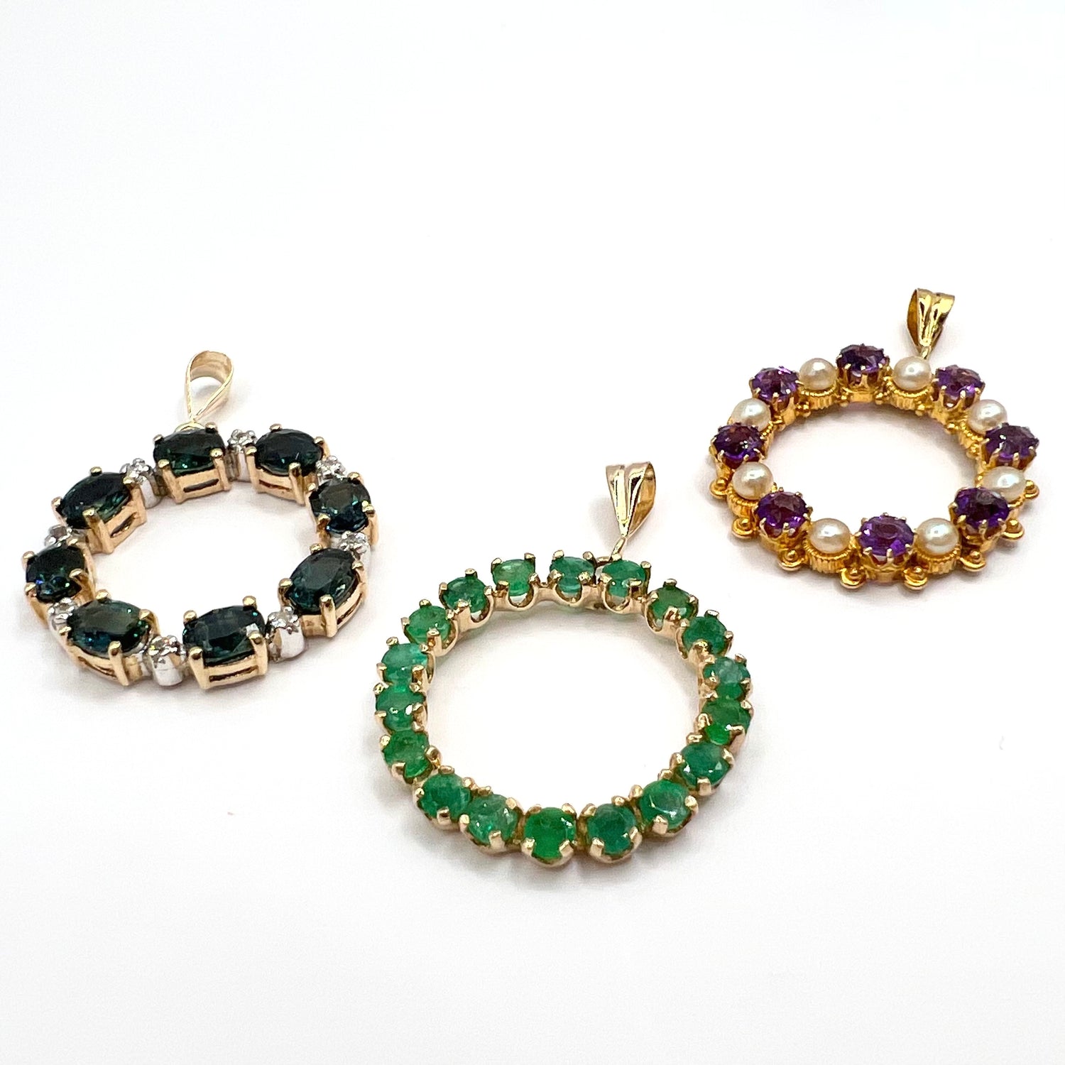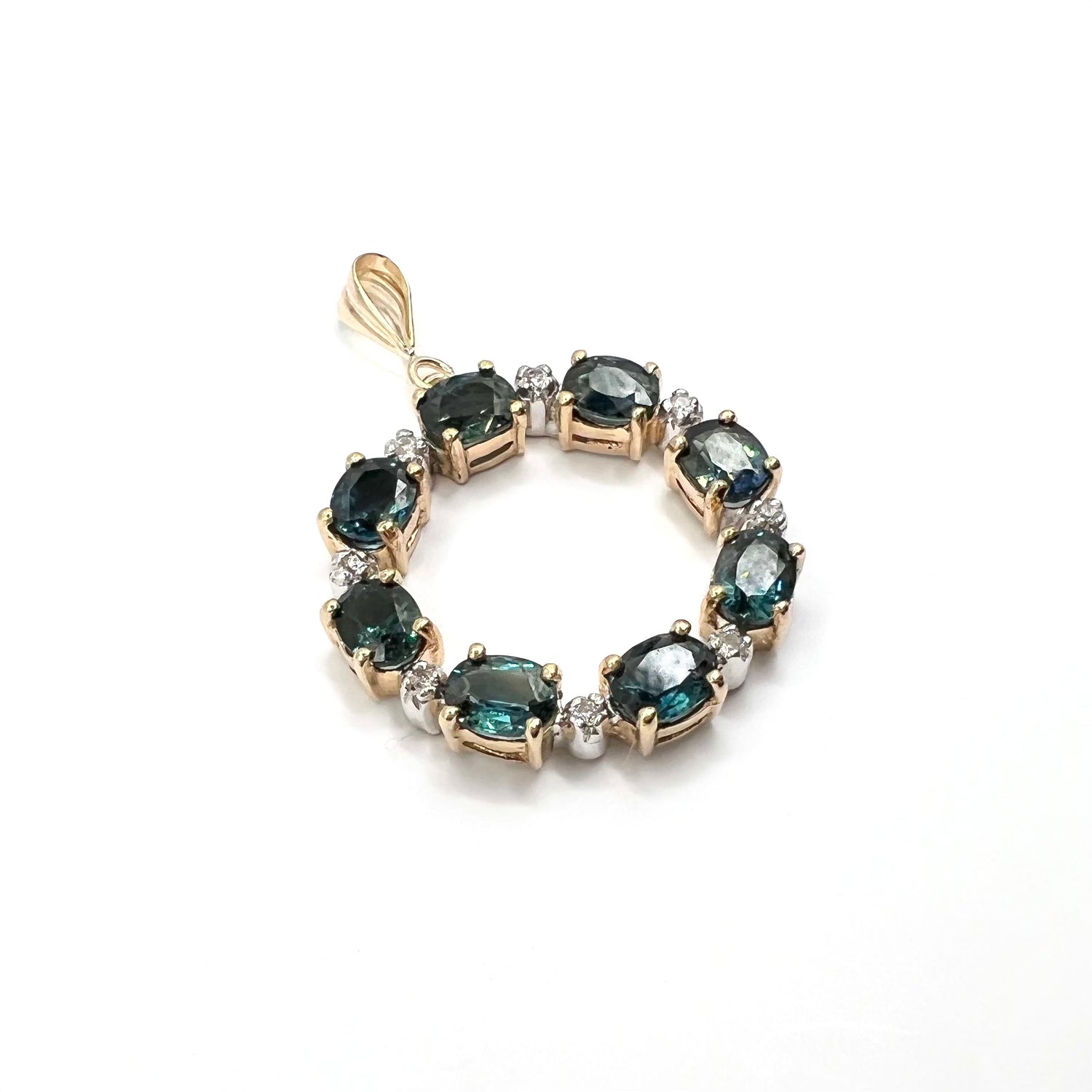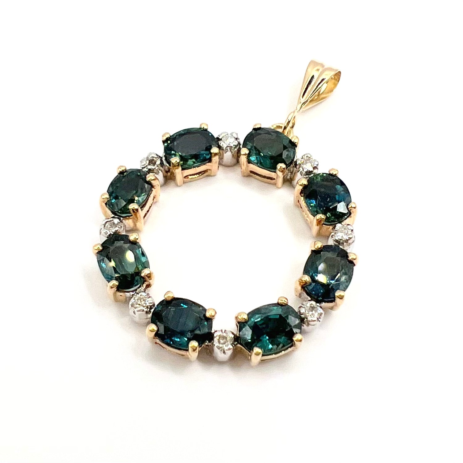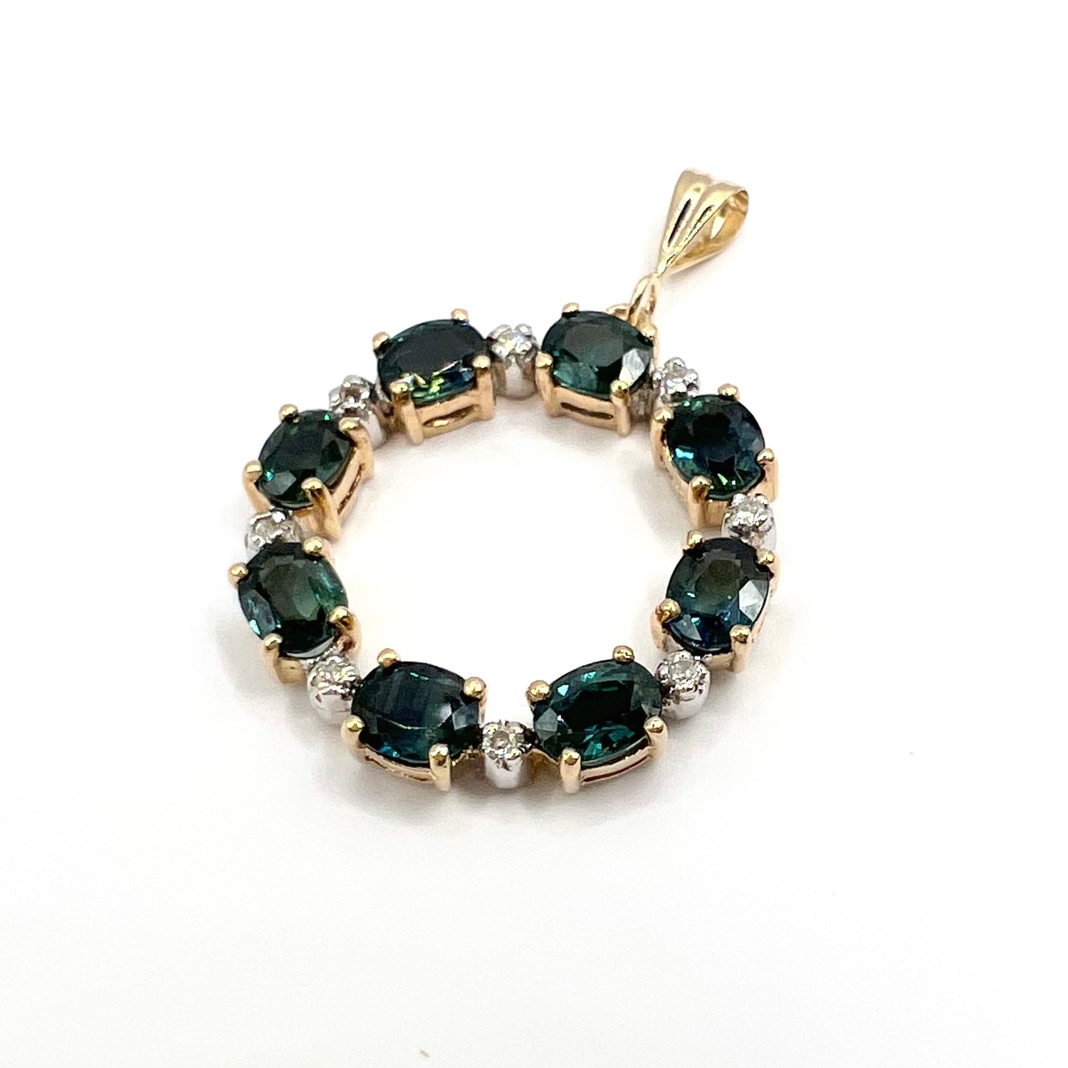9ct Vintage Gold Sapphire and Diamond Rondel Pendant