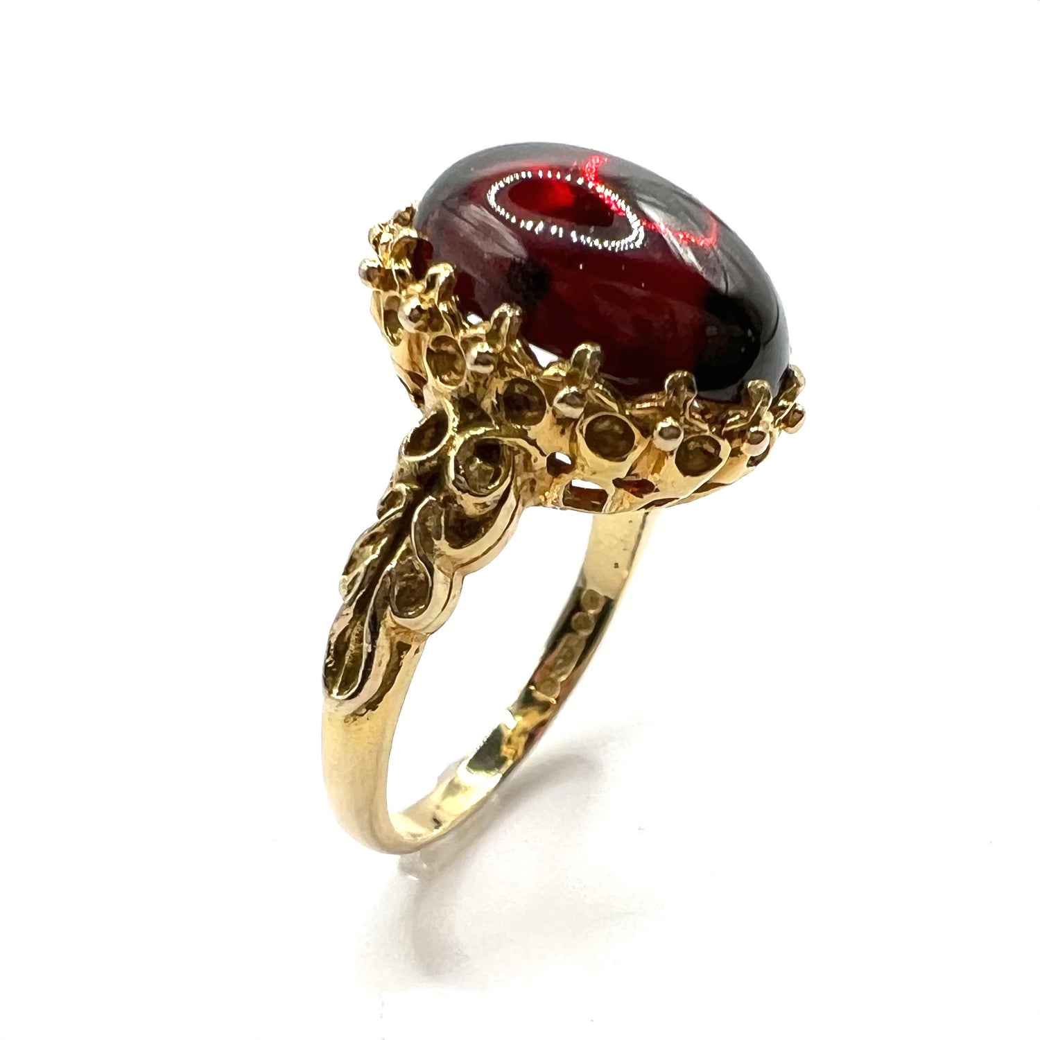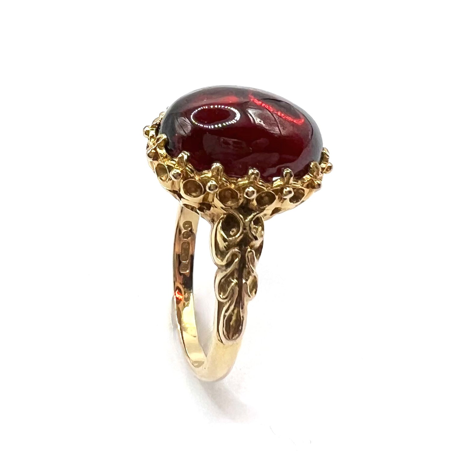 Antique 9ct Gold Oval Cabuchon Garnet Cocktail Ring, Size M