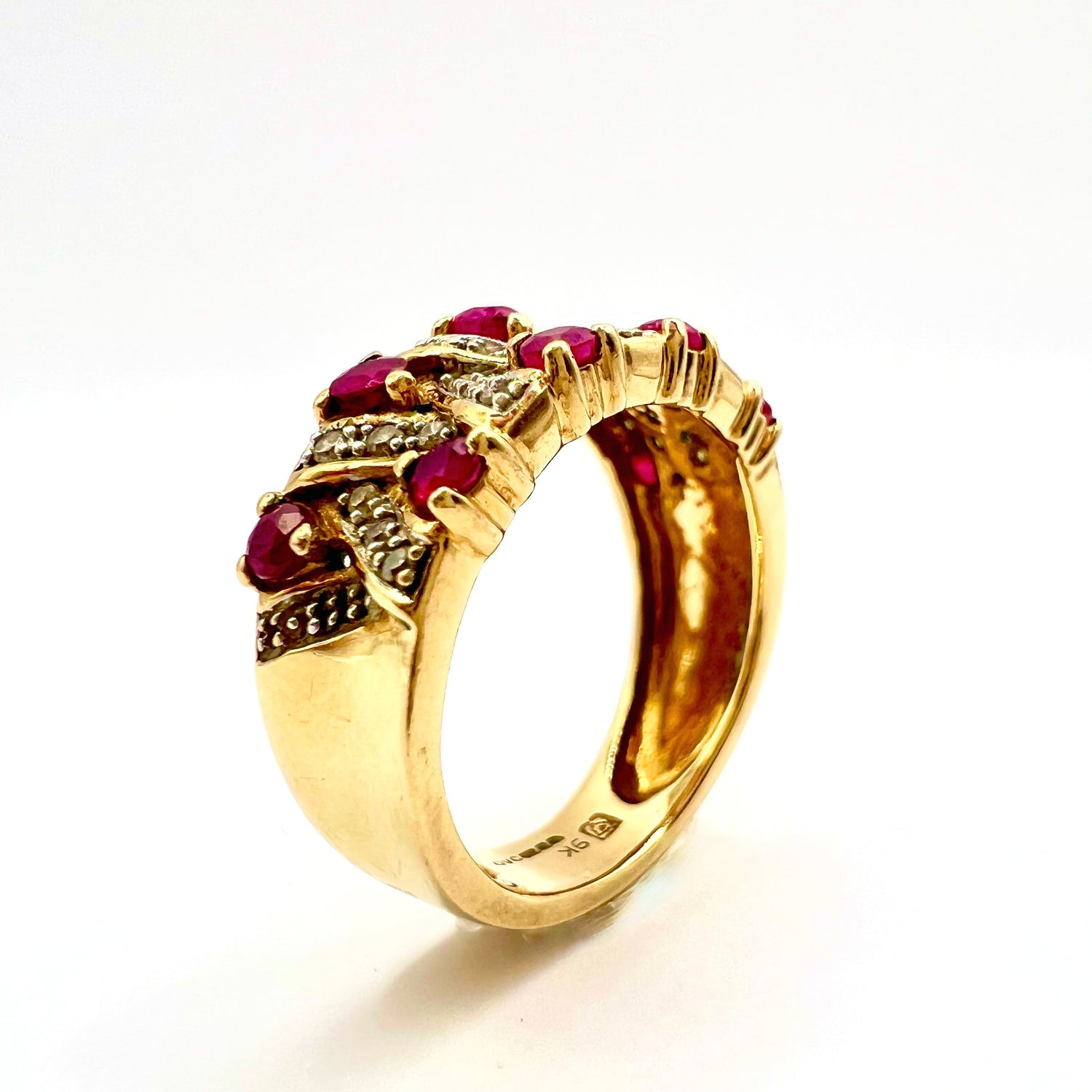 Vintage 9ct Gold, Ruby and Diamond Dress Ring, Size J