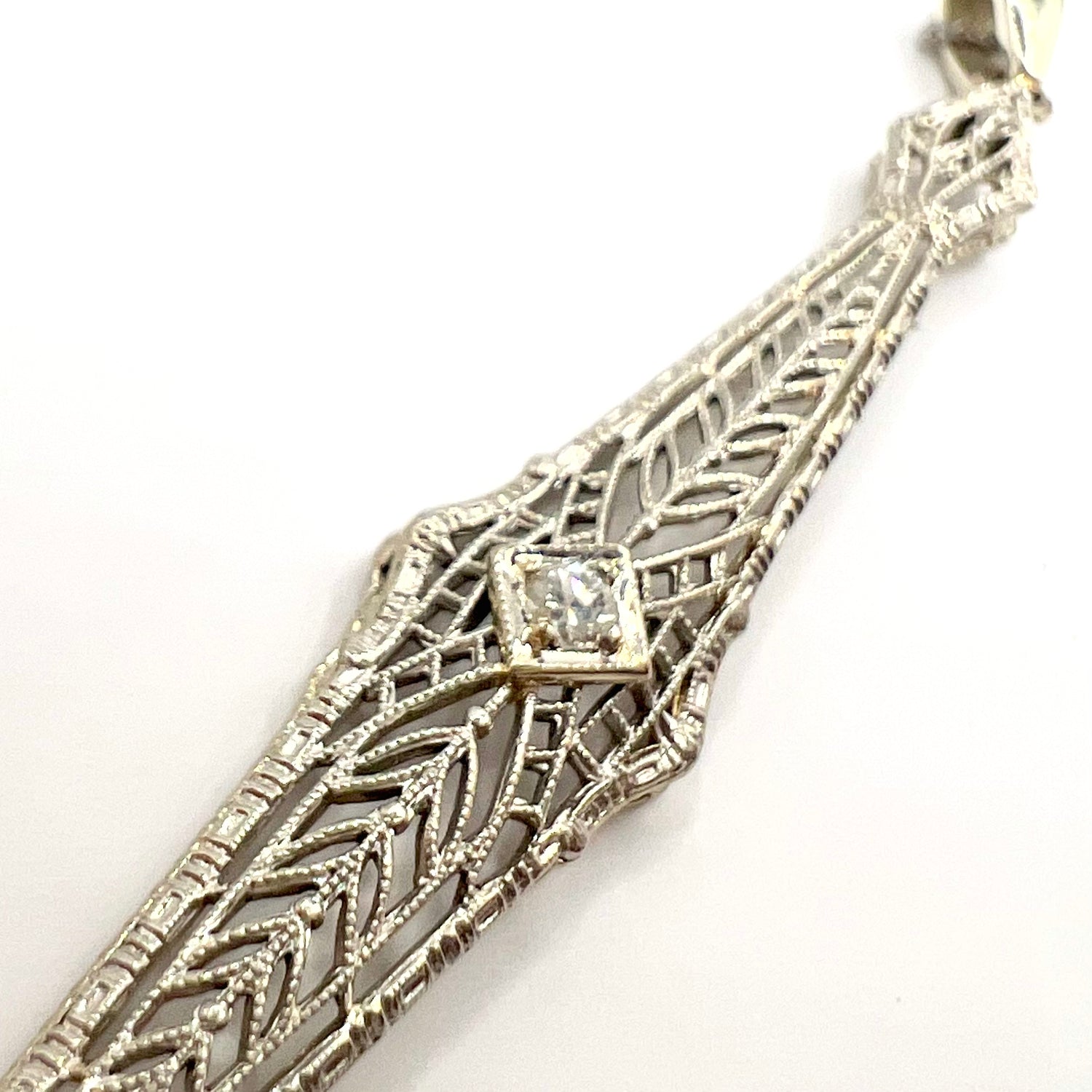 Art Deco 14 ct White Gold Pendant with Central Brilliant Cut Diamond, Reworked from Antique Brooch