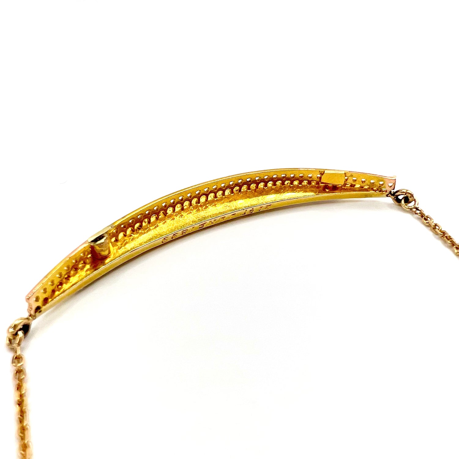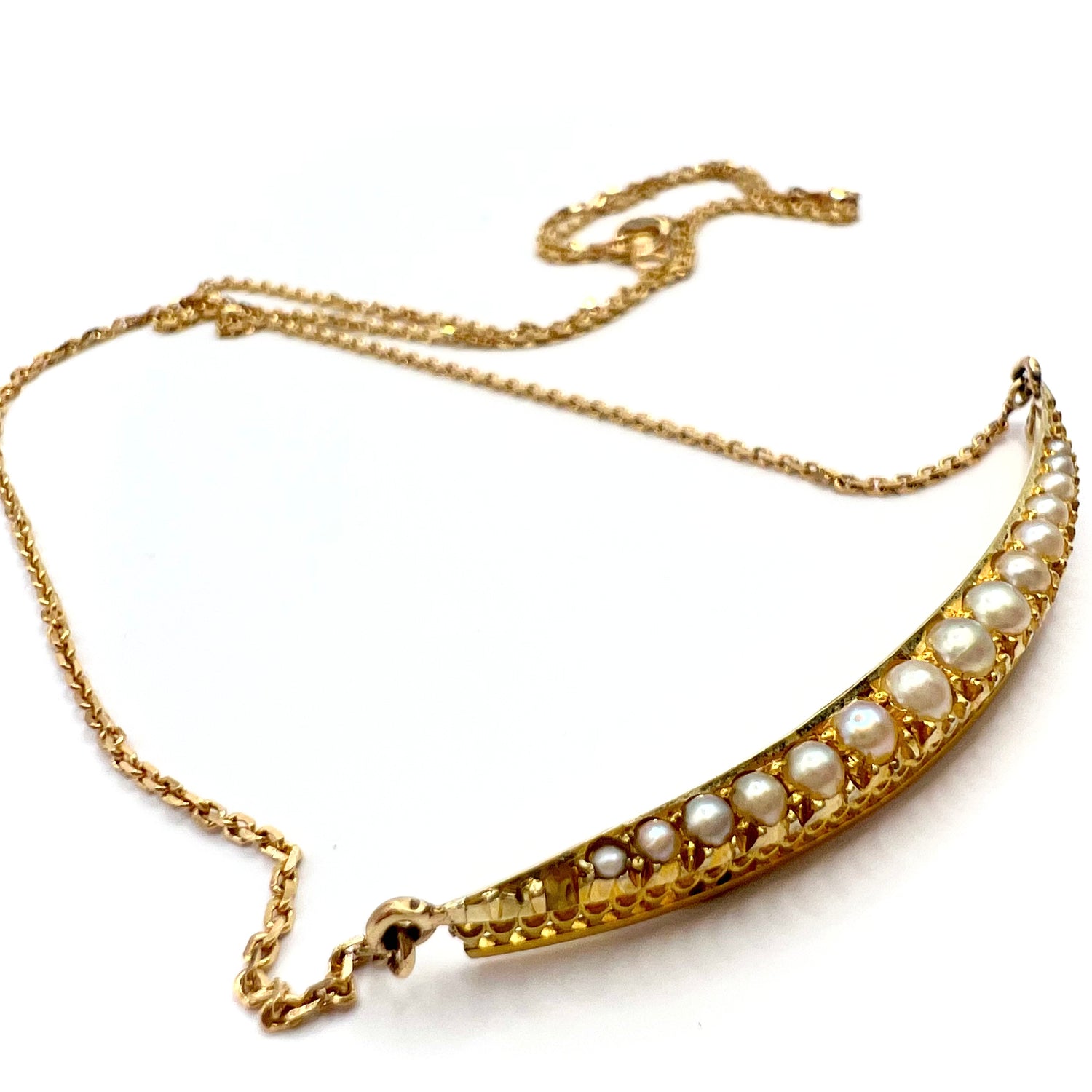 Victorian 9ct Gold and Split Pearl Open Crescent Moon Necklace