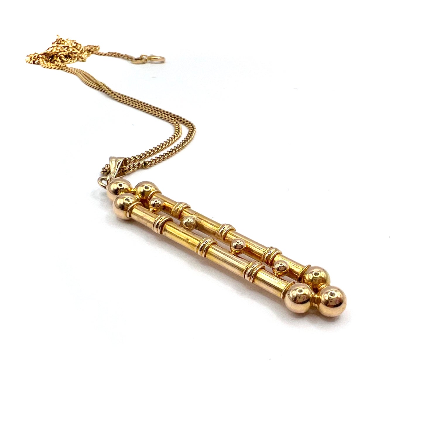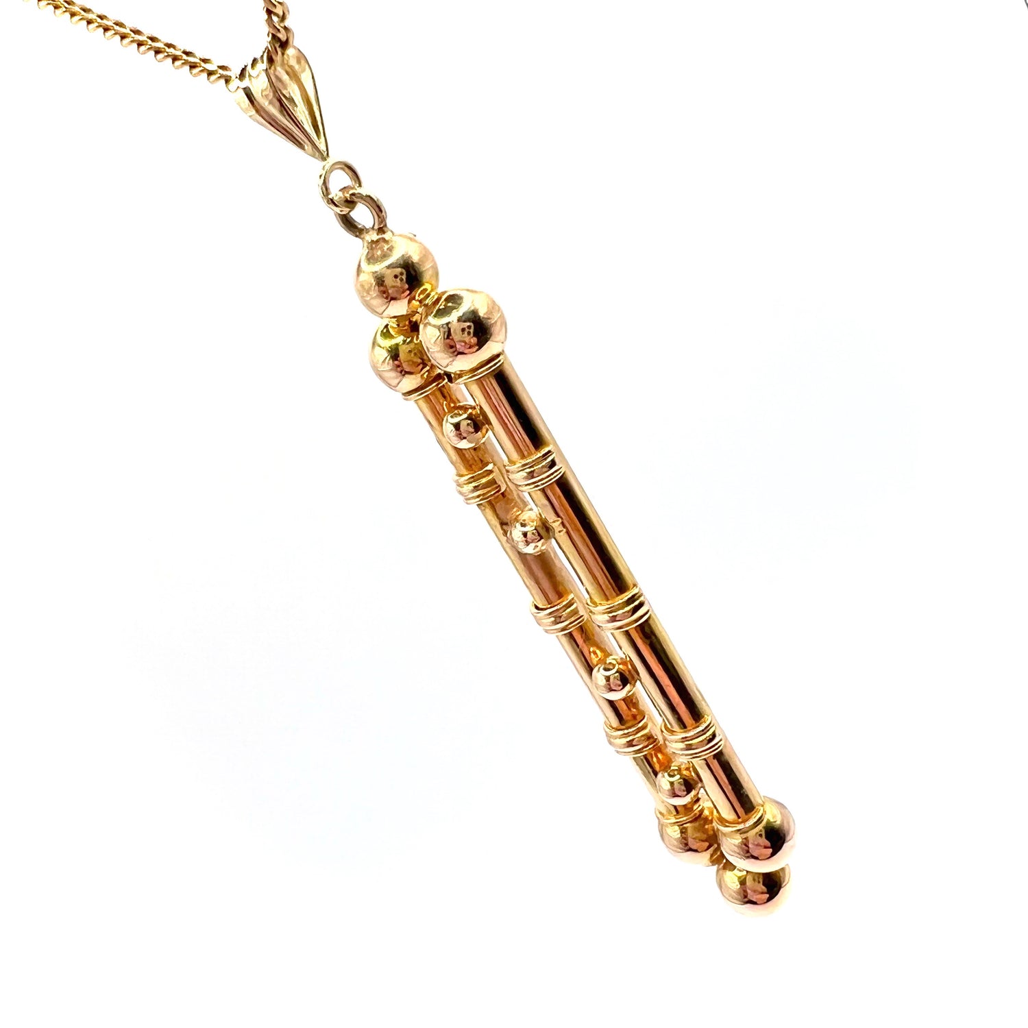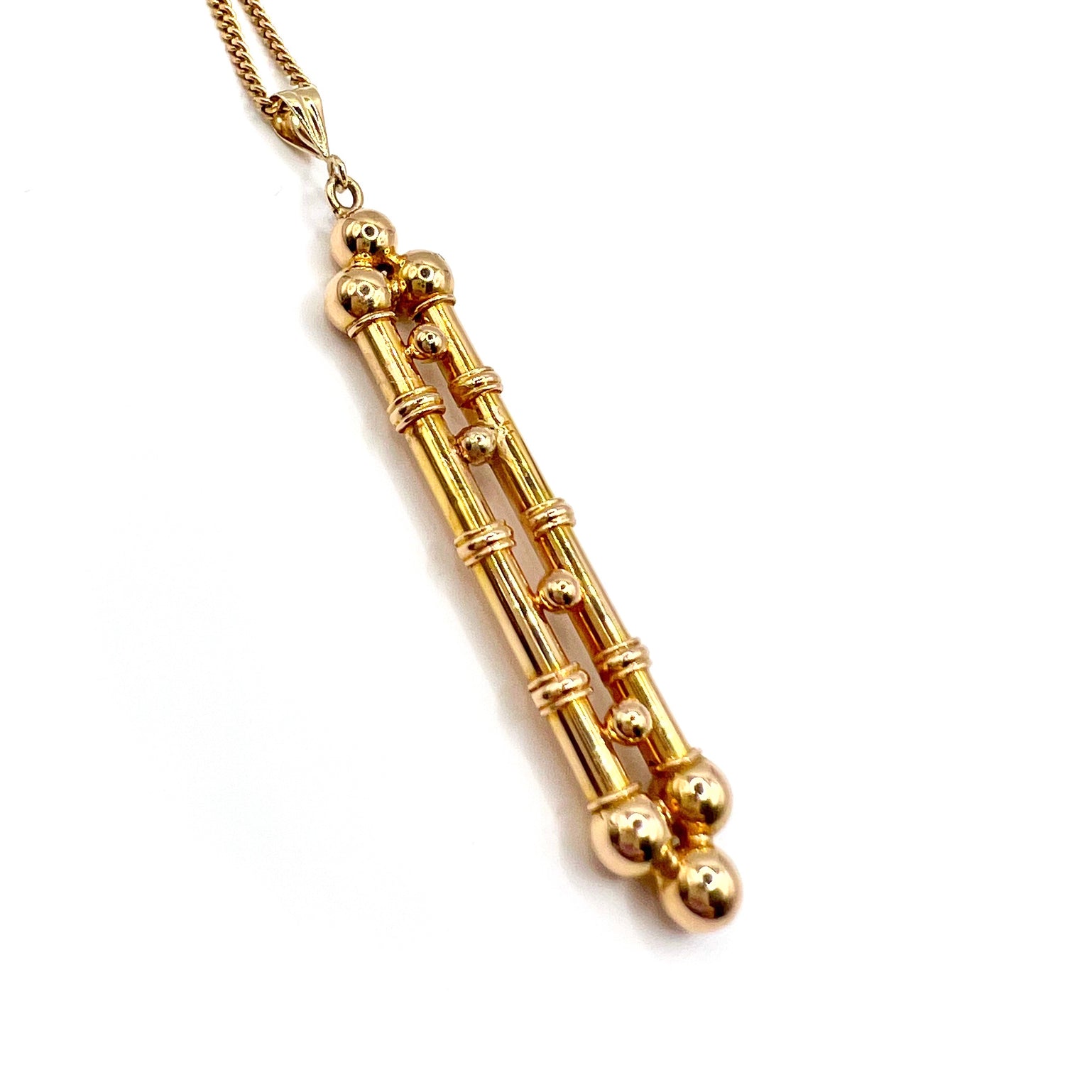 A beautiful Antique Victorian 15 ct gold pendant in fine vintage condition, featuring unique gold bamboo detailing.