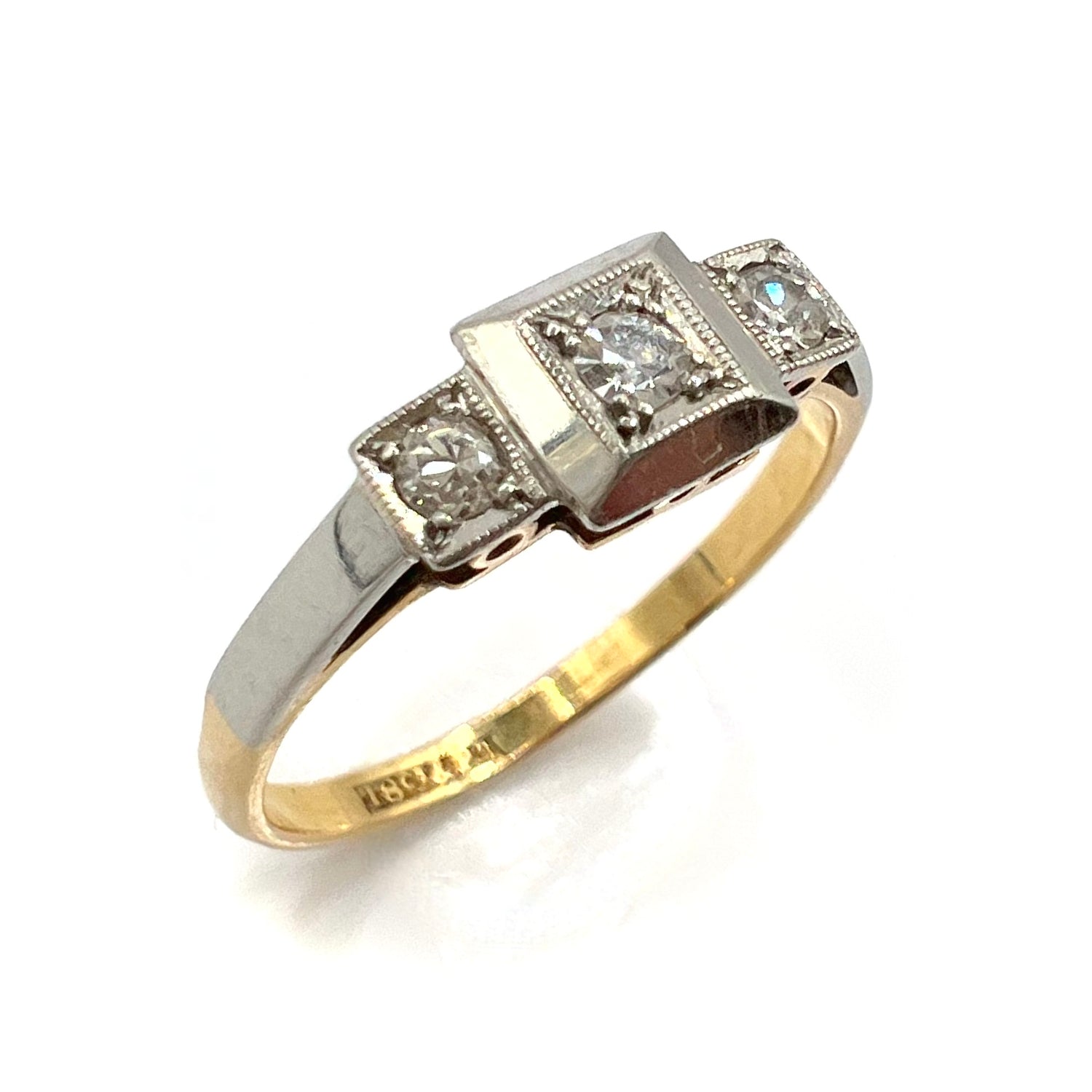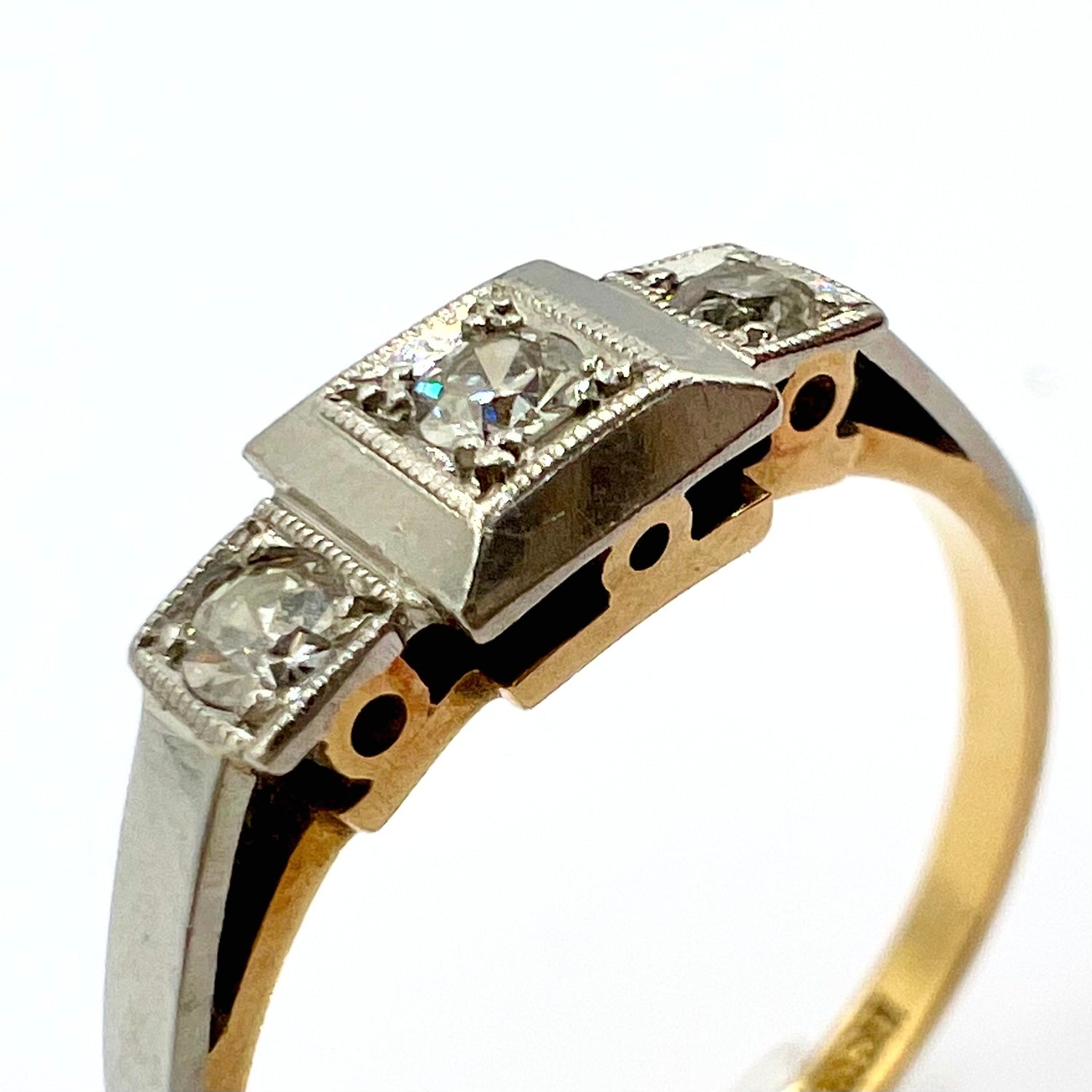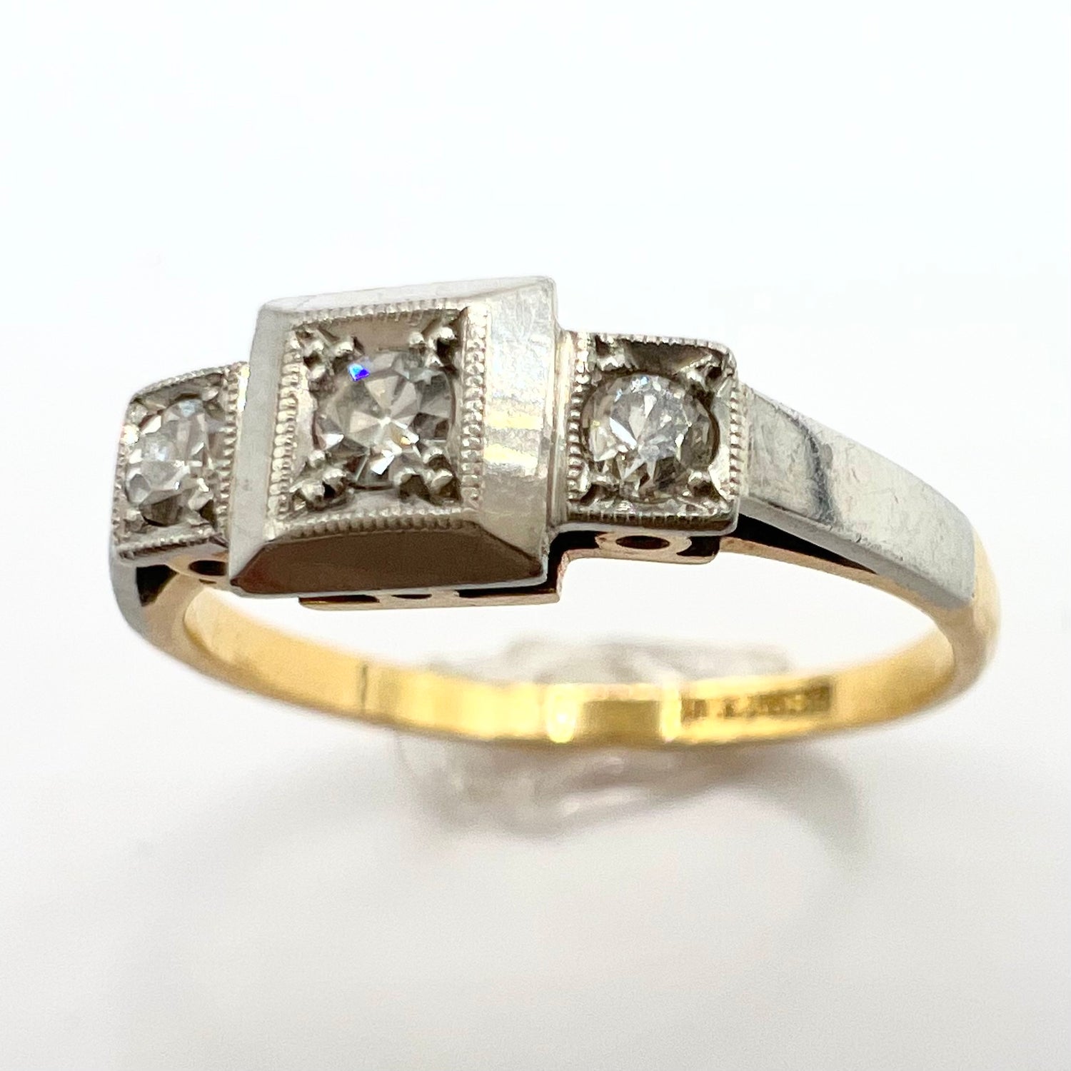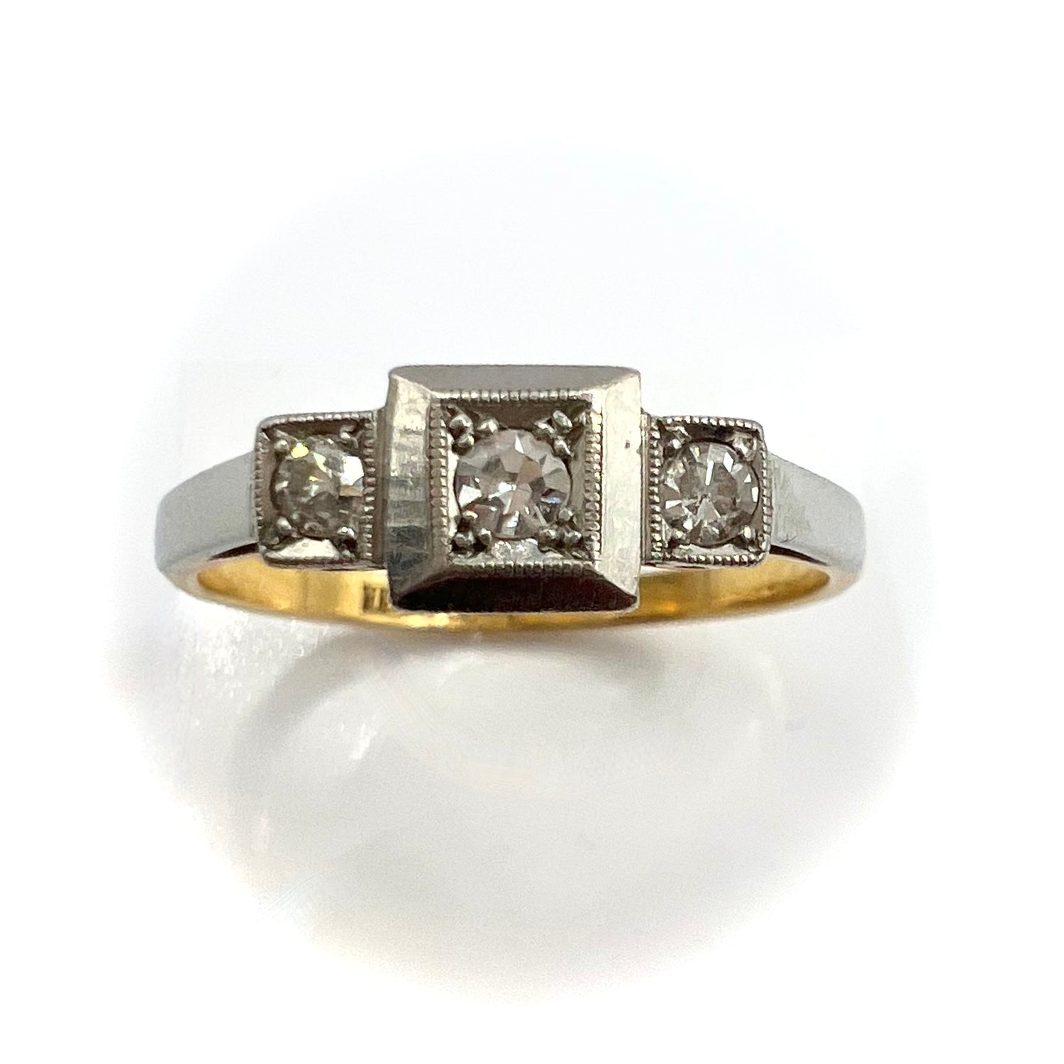 1920s Art Deco Platinum and 18ct gold trilogy engagement ring, size M