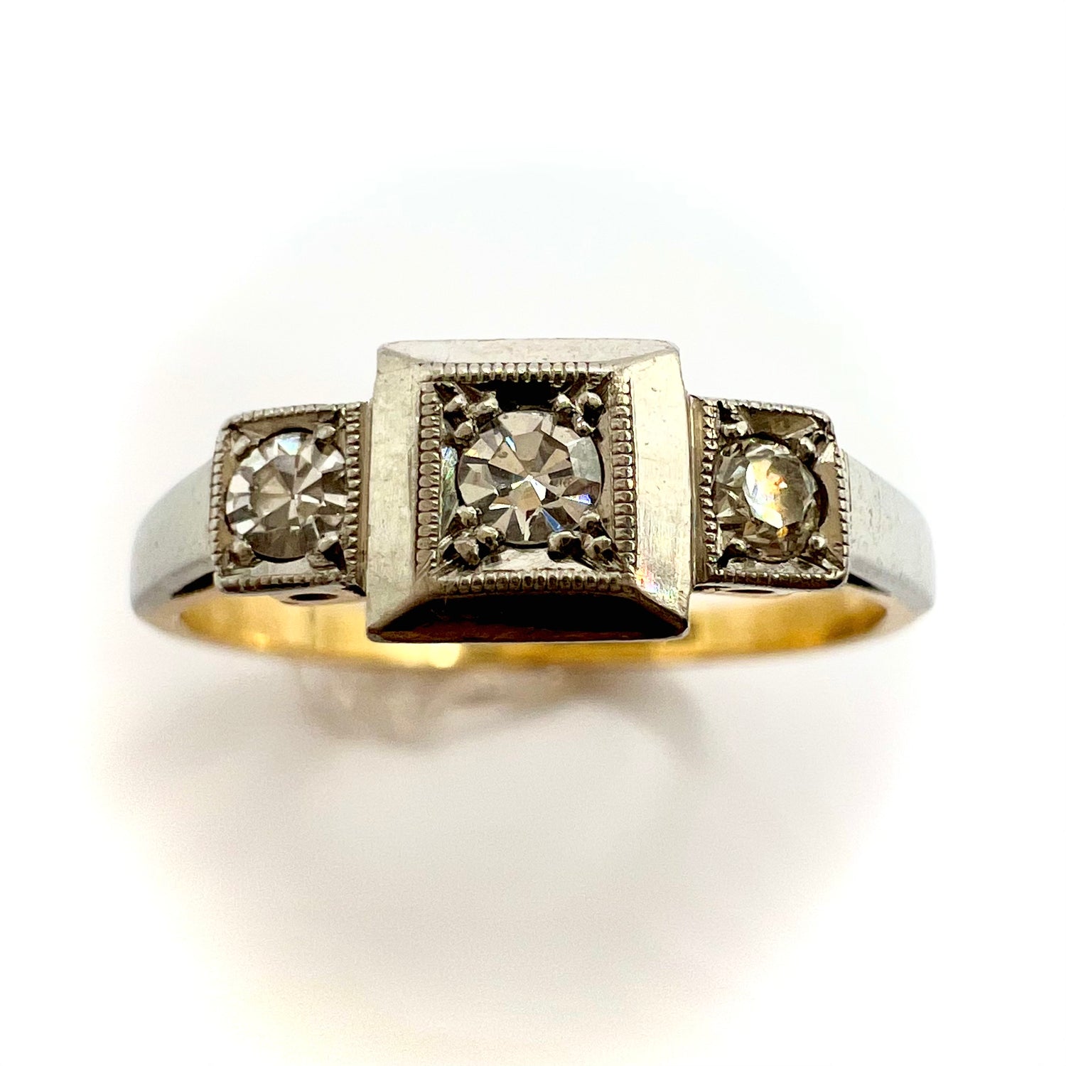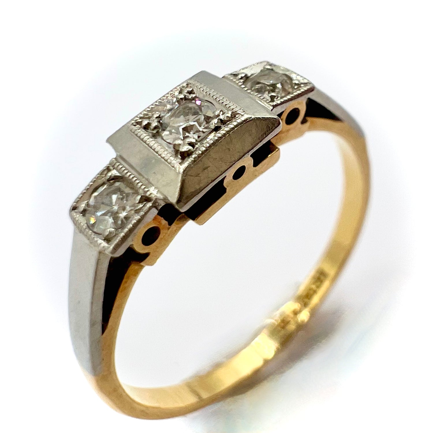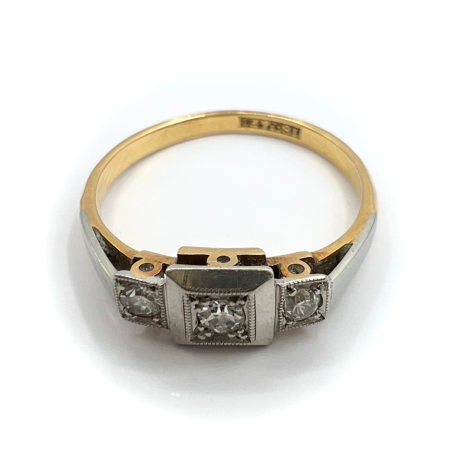 1920s Art Deco Platinum and 18ct gold trilogy engagement ring, size M