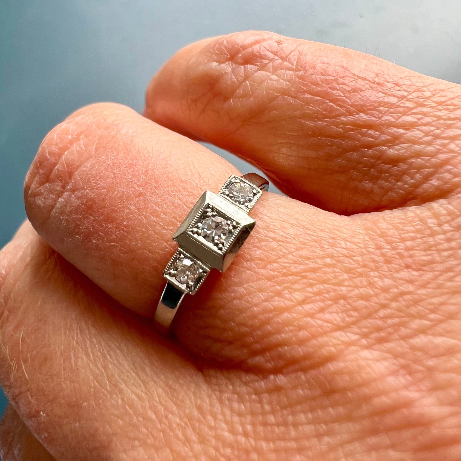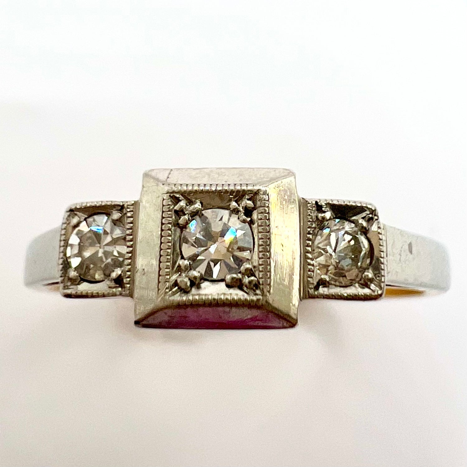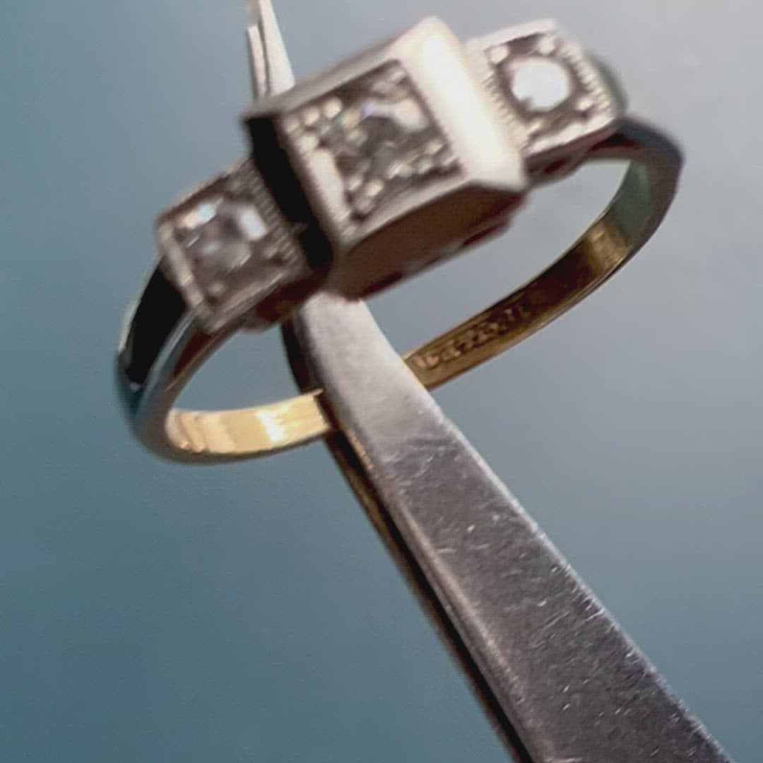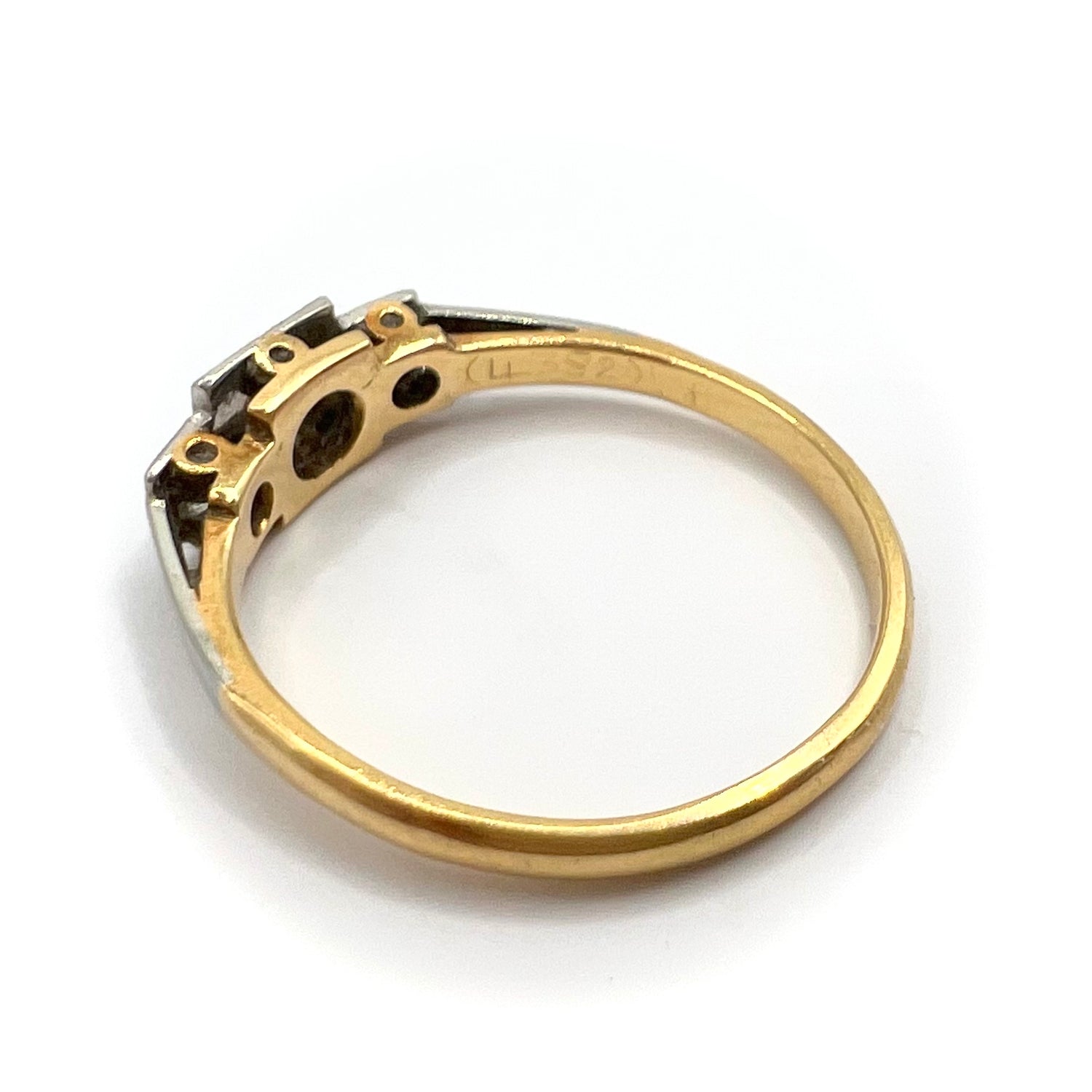 1920s Art Deco Platinum and 18ct gold trilogy engagement ring, size M