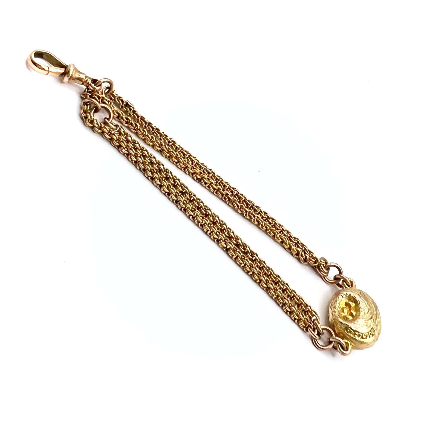 A Victorian 9ct gold hallmarked albertina watch chain bracelet, in fine vintage condition, featuring a central bird nest charm, and a secure dog clip / swivel clasp with a good spring.