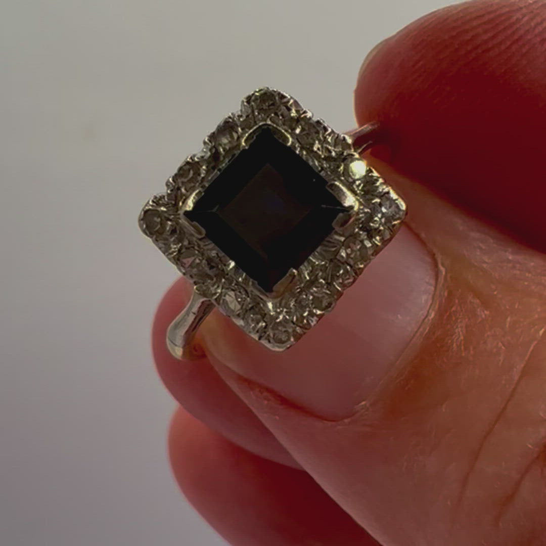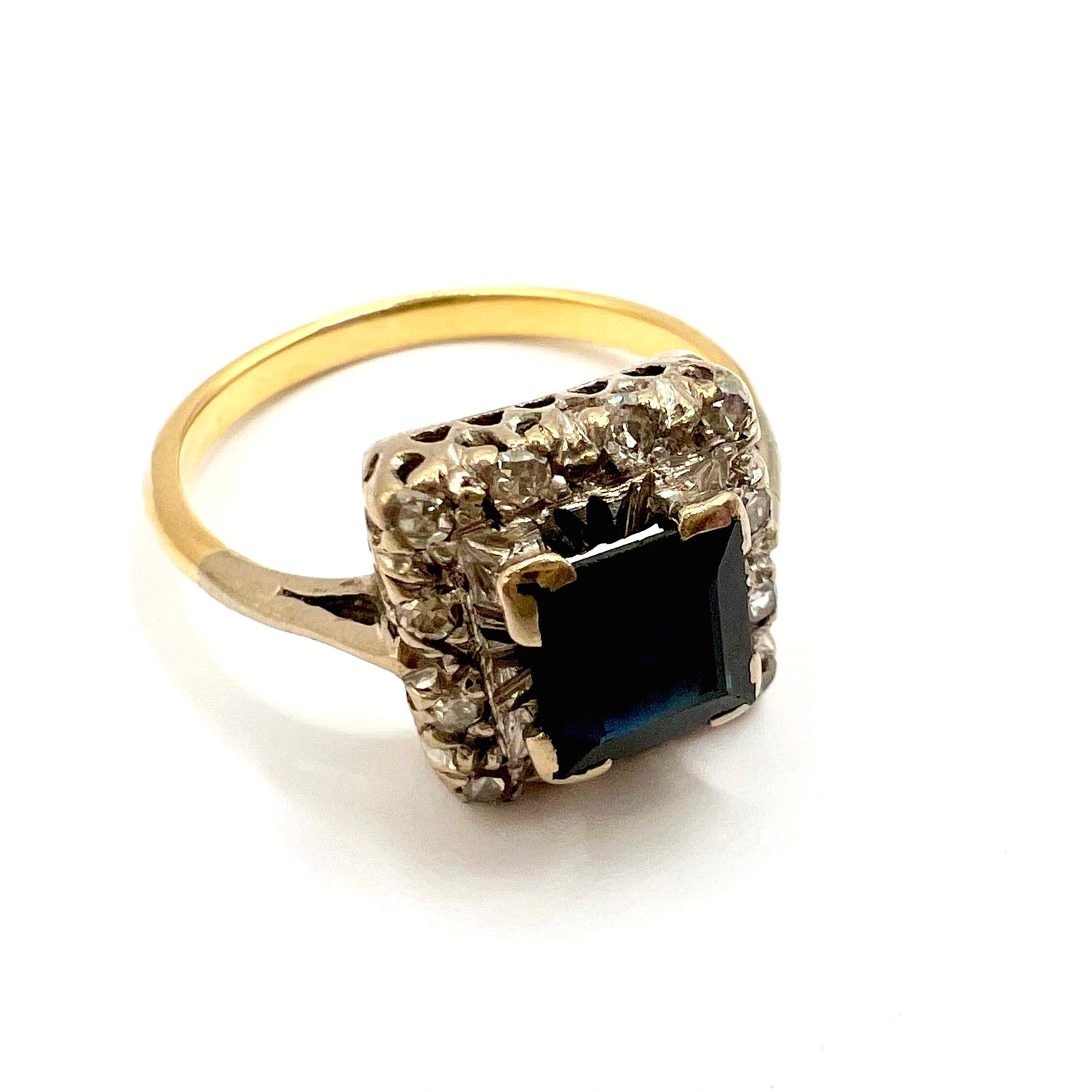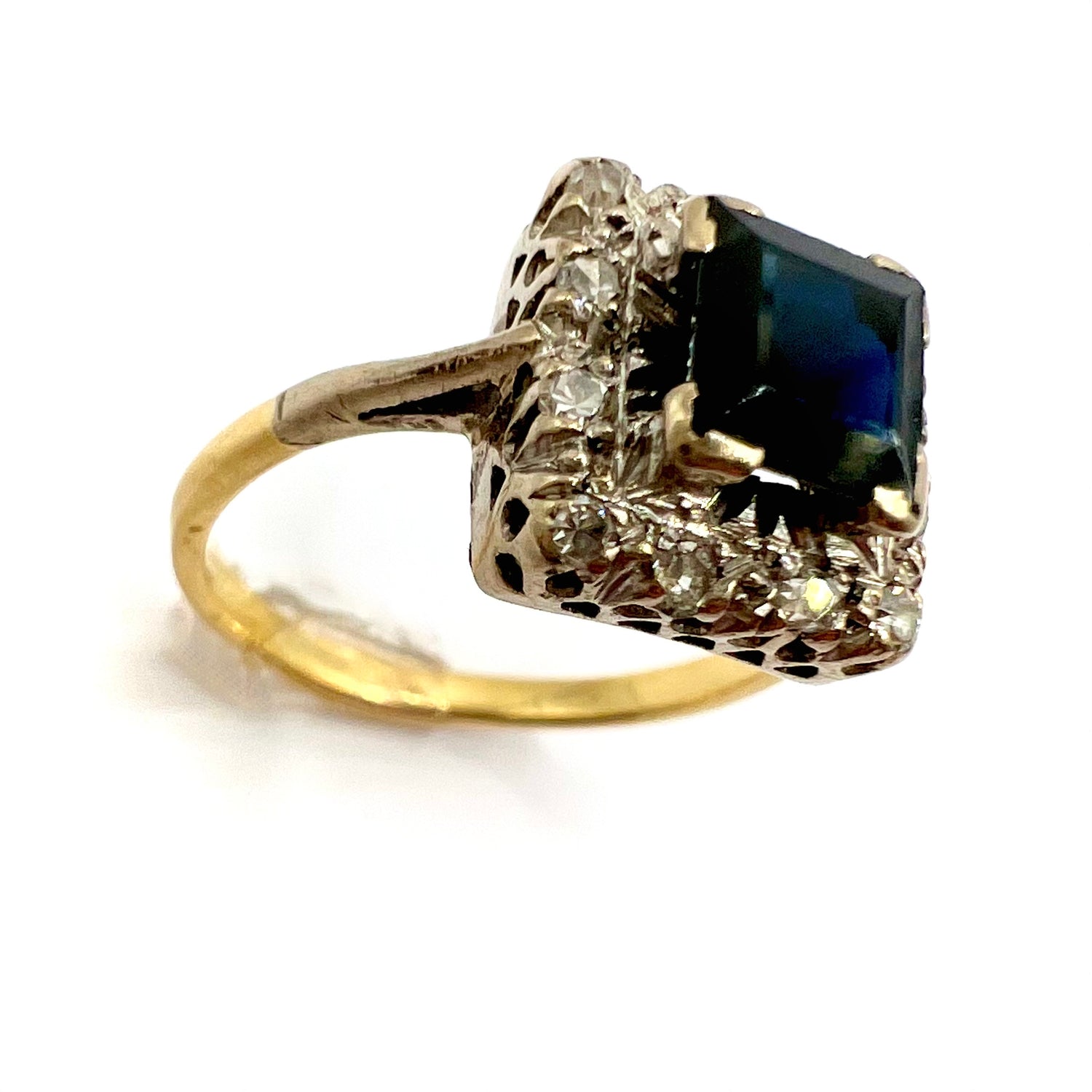 Vintage Platinum and 18ct Gold Step Cut Sapphire and Diamond Dress Ring, Size L