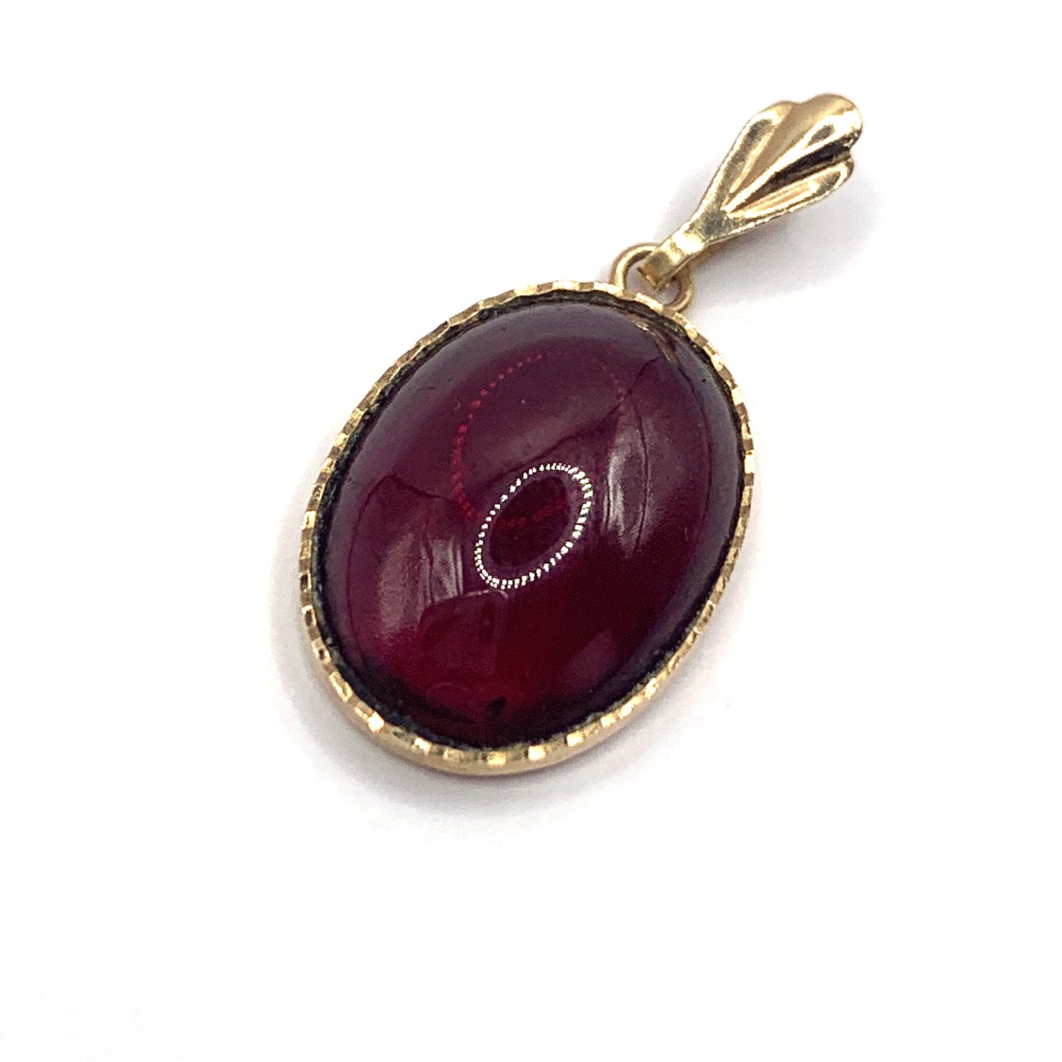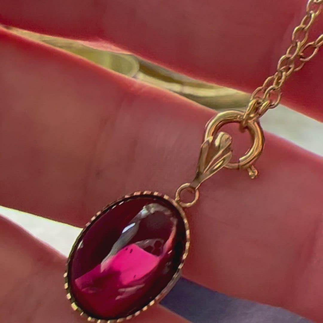 Vintage 9ct Yellow Gold Garnet Cabochon Pendant