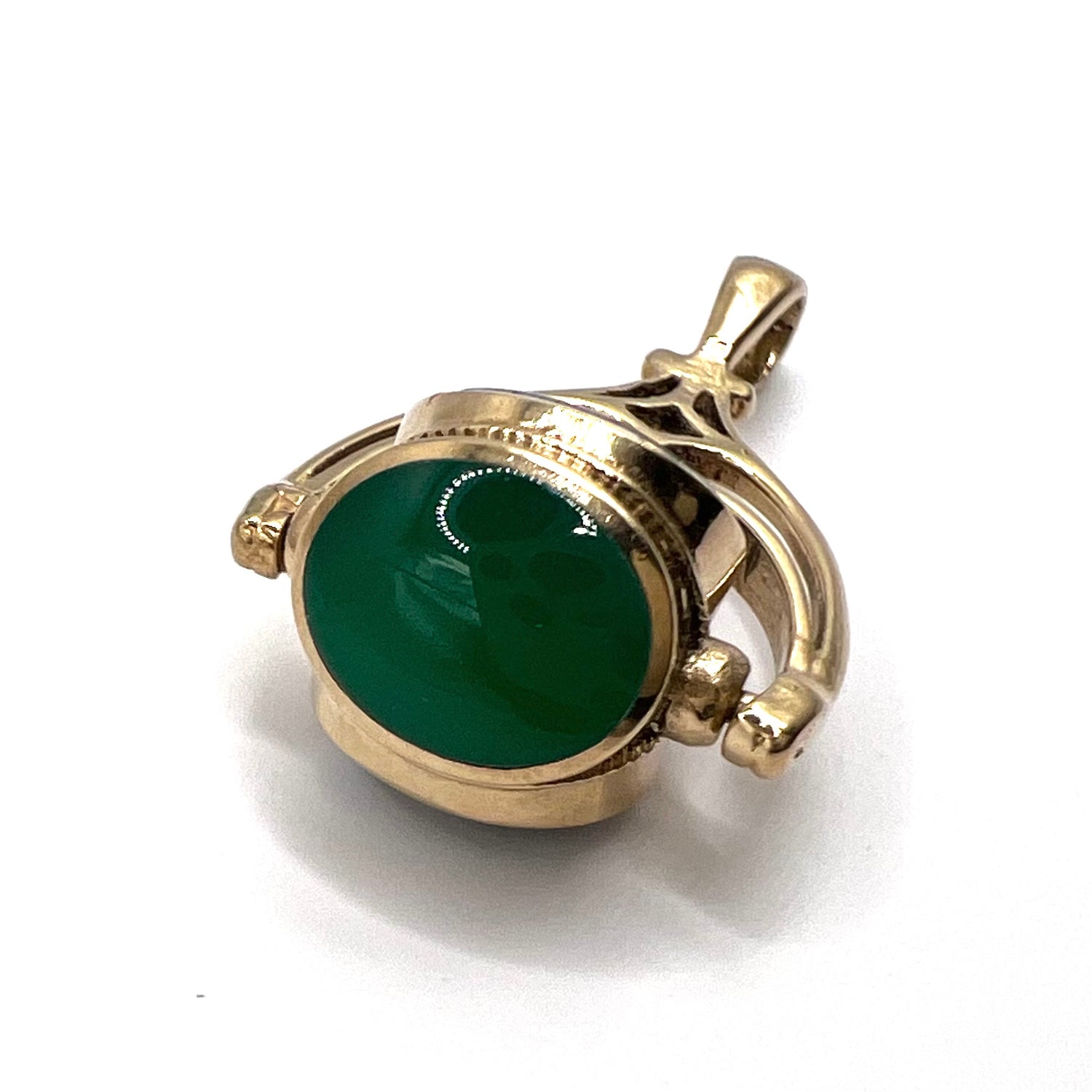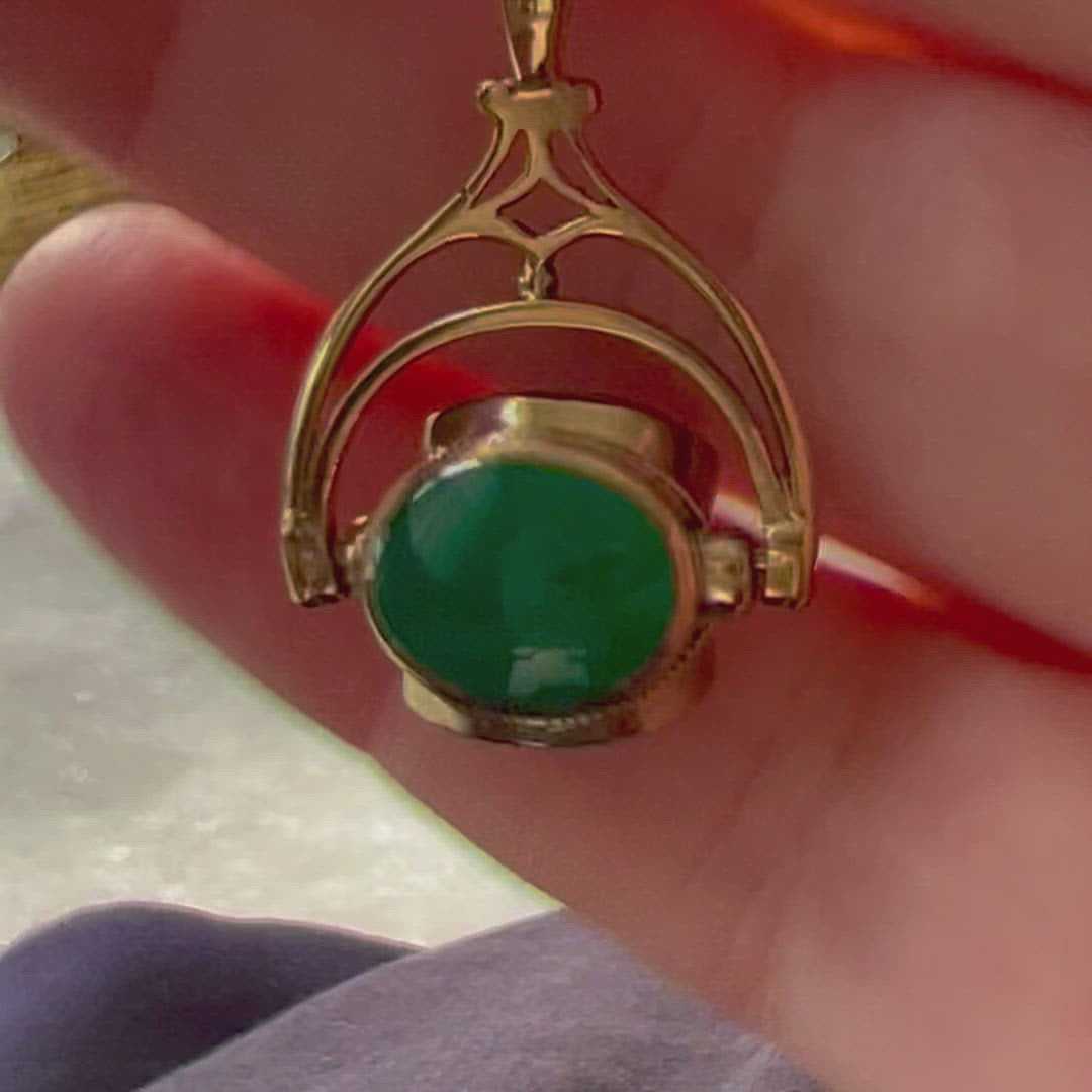 A Victorian hallmarked 9ct gold spinning fob pendant in excellent condition, featuring three agate stones in green, blue and brown. It's like having your very own adult fidget spinner. Looks great on a gold chain, either on its own, or part of a stack.